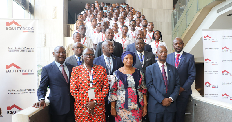 DRC’s Minister of Foreign Trade Jean Lucien Bussa, Vice-Prime Minister for DRC H.E Eve Bazaiba, Equity Group Managing Director & CEO Dr. James Mwangi and former Cabinet Secretary Ministry of Industrialization, Industry and Enterprise Development Hon. Betty Maina during the launch of the Equity Leaders Program in DRC. The inaugural ELP class of 131 top-performing young scholars who topped the final six secondary school examinations will join EquityBCDC for a 2-6 months paid internship program.